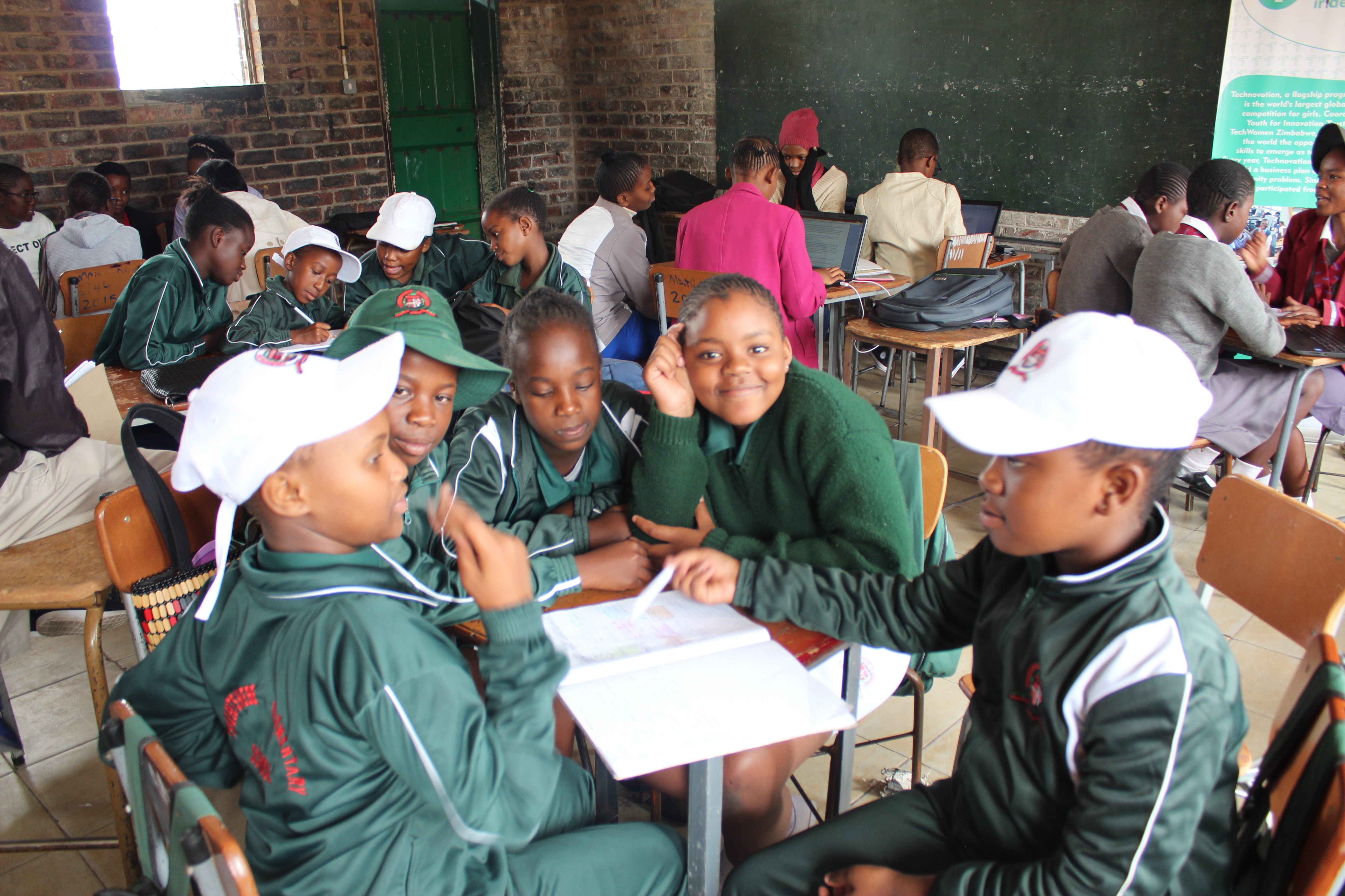 As the girls were working on different issues there is a group of four girls from Mandwandwe High School. They go by the names: Elizabeth Gumbo, Chantel Dube, Siphathisiwe Dube and Melisa Ndlovu. These girls call themselves techno glowing girls. They are the senior girls at Mandwandwe.