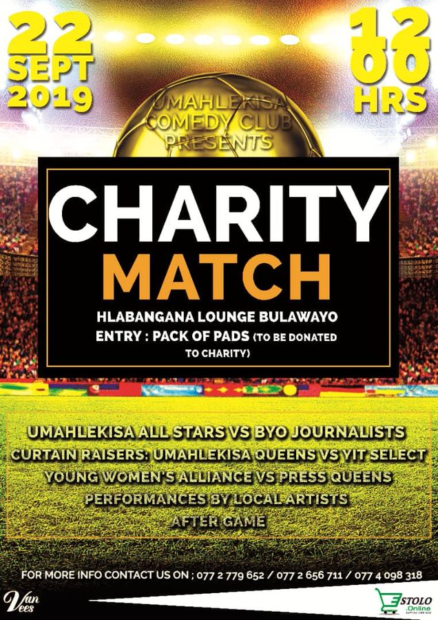 In a bid to raise awareness and sanitary wear for young girls in Ngozi Mine Youth For innovation Trust will play a charity match against uMahlekisa Queens at Hlabangana Lounge in Bulawayo on the 22nd of September 2019, The entry for this match is a pack of sanitary wear. The main match of the day… Continue reading YIT plays Charity Match to raise sanitary wear for young girls